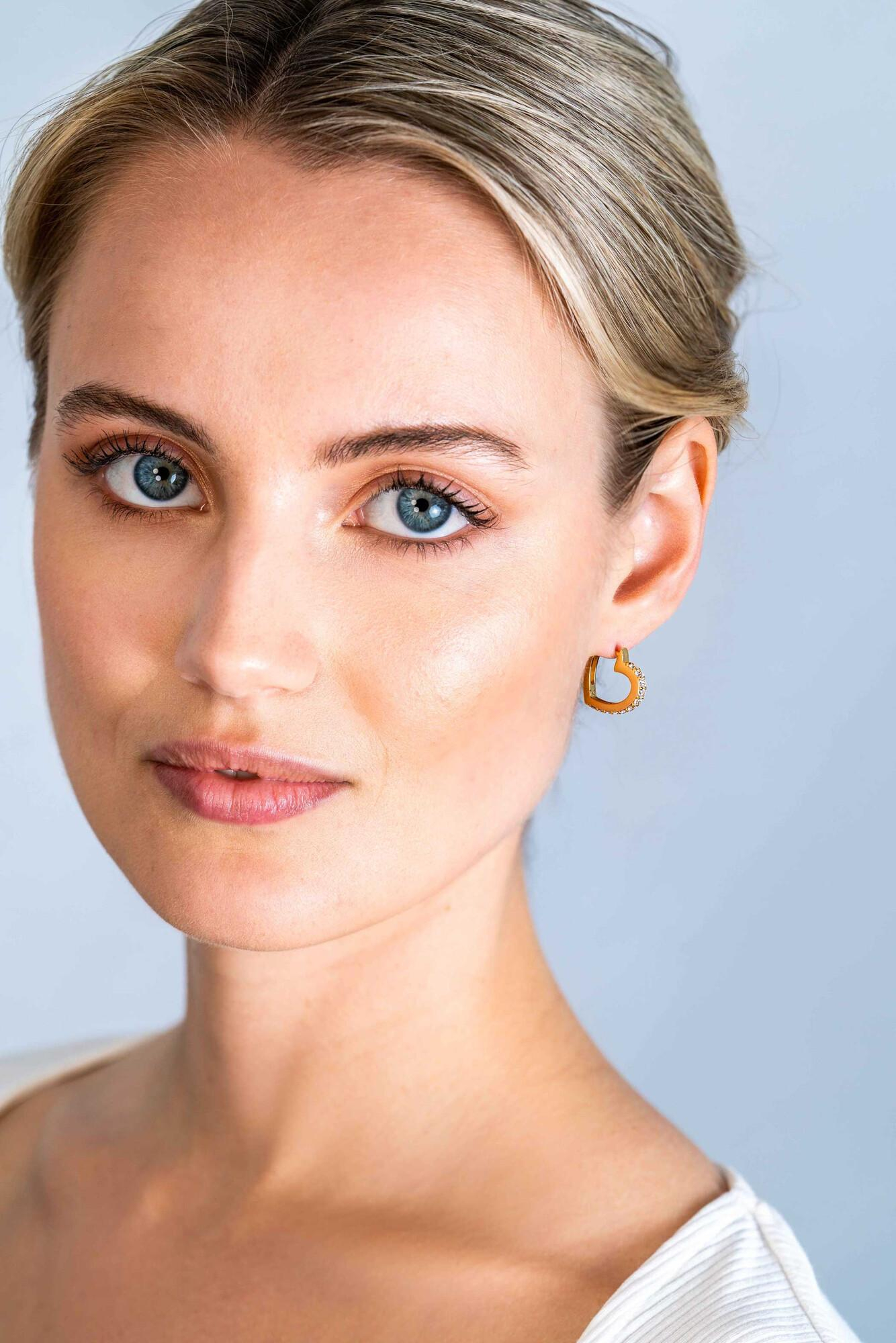 ZINZI gold plated zilveren luxe oorringen 17mm in hartvorm, bezet met witte zirconia's. Met luxe scharniersluiting. Deze oorringen zijn te combineren met al onze Zinzi oorbedels. Vervaardigd van eerste gehalte zilver (925) en voorzien van een extra 14K geel vergulding.