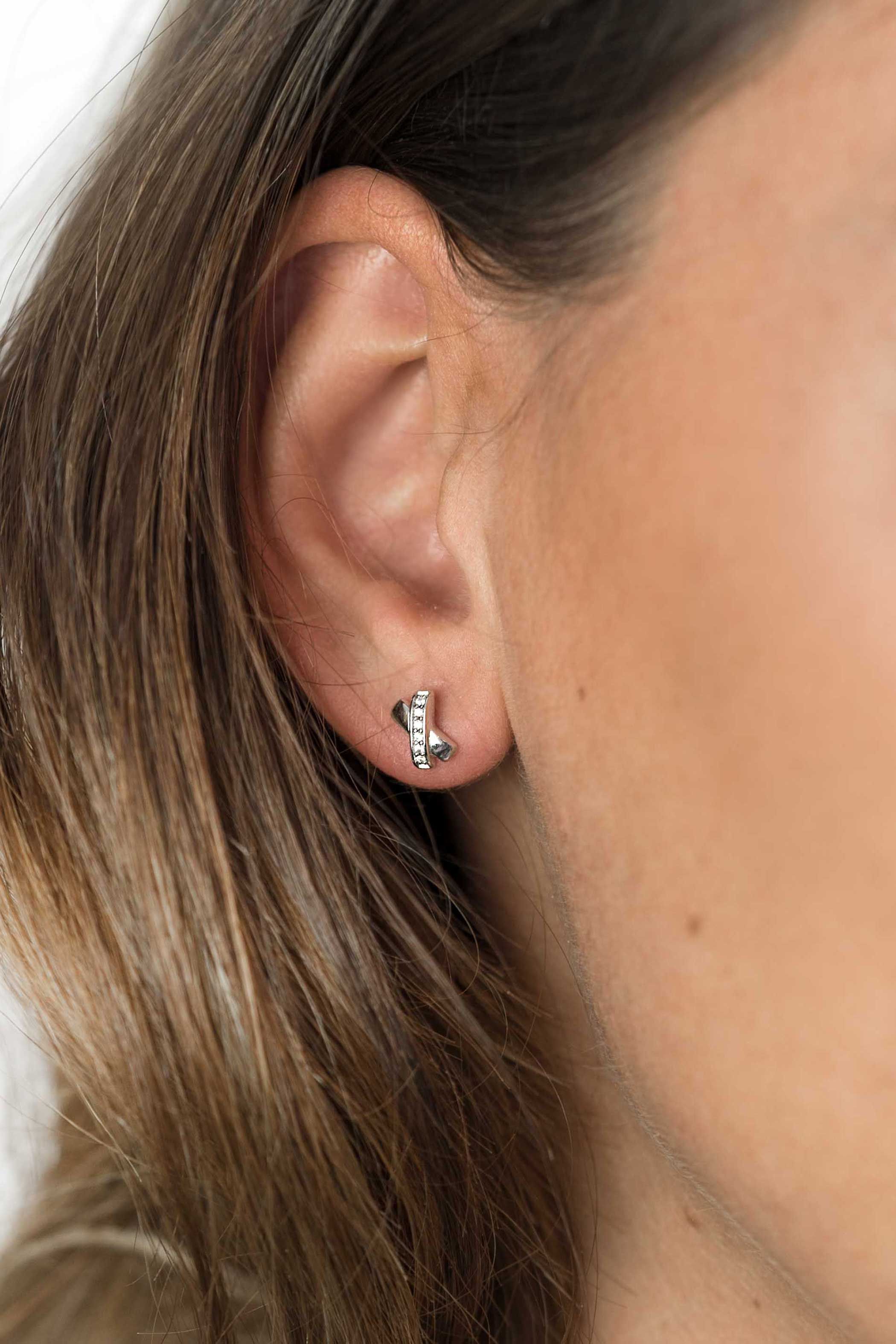 ZINZI zilveren oorknoppen met een mooi kruislings design, waarvan een band bezet is met witte zirconia's. Vervaardigd van eerste gehalte zilver (925) en voorzien van een extra rodium laag voor een langdurige glans.