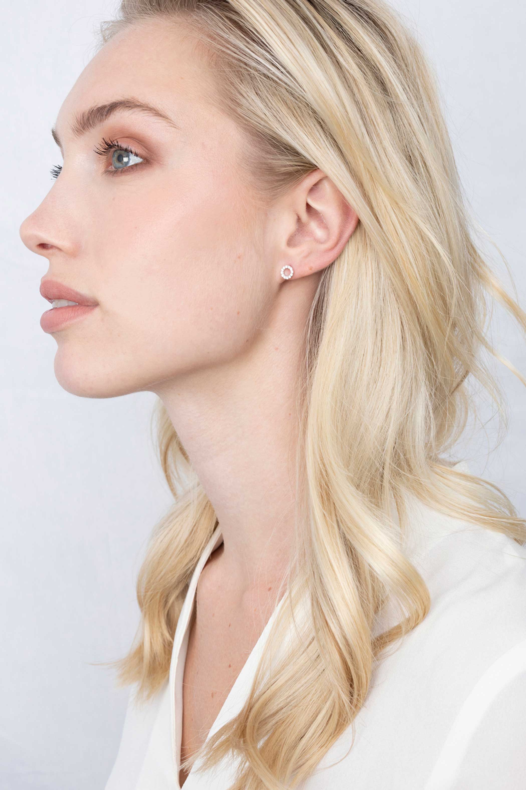 ZINZI zilveren oorknoppen met een open rondje, bezet met witte zirconia's. Vervaardigd van eerste gehalte zilver (925) en met extra rodiumlaag voor een langdurige glans.