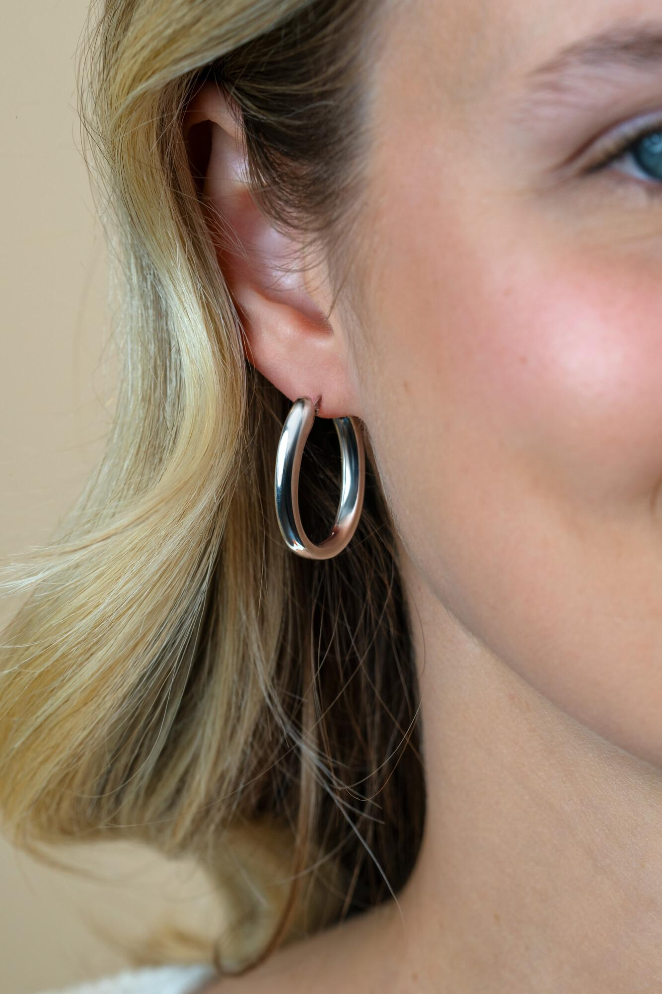 ZINZI zilveren oorringen 28mm met een organische gevormde buis van 3mm breed. Met handige italiaanse bovensluiting. Perfect in balans voor een opvallende maar verfijnde look. Vervaardigd van eerste gehalte zilver (925) en extra gerodineerd.