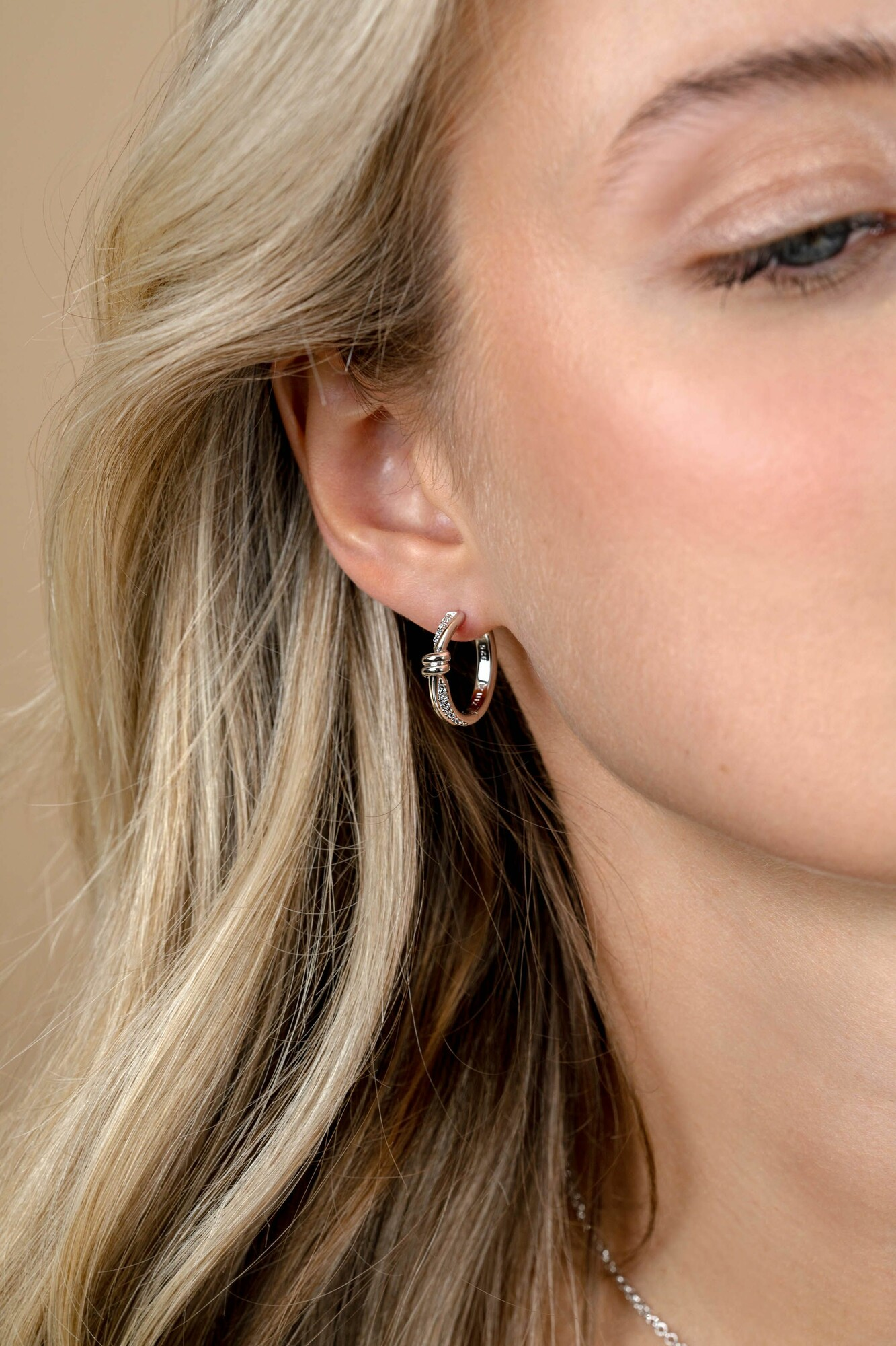 ZINZI zilveren oorringen 19mm met speelse twist en knoop. Bezet met witte zirkonia's. Met luxe en gemakkelijke klapsluiting. Maak je look compleet met de bijpassende ketting en ring voor een chique look! Vervaardigd van eerste gehalte zilver (925) en voorzien van een extra rodiumlaag voor een langdurige glans.