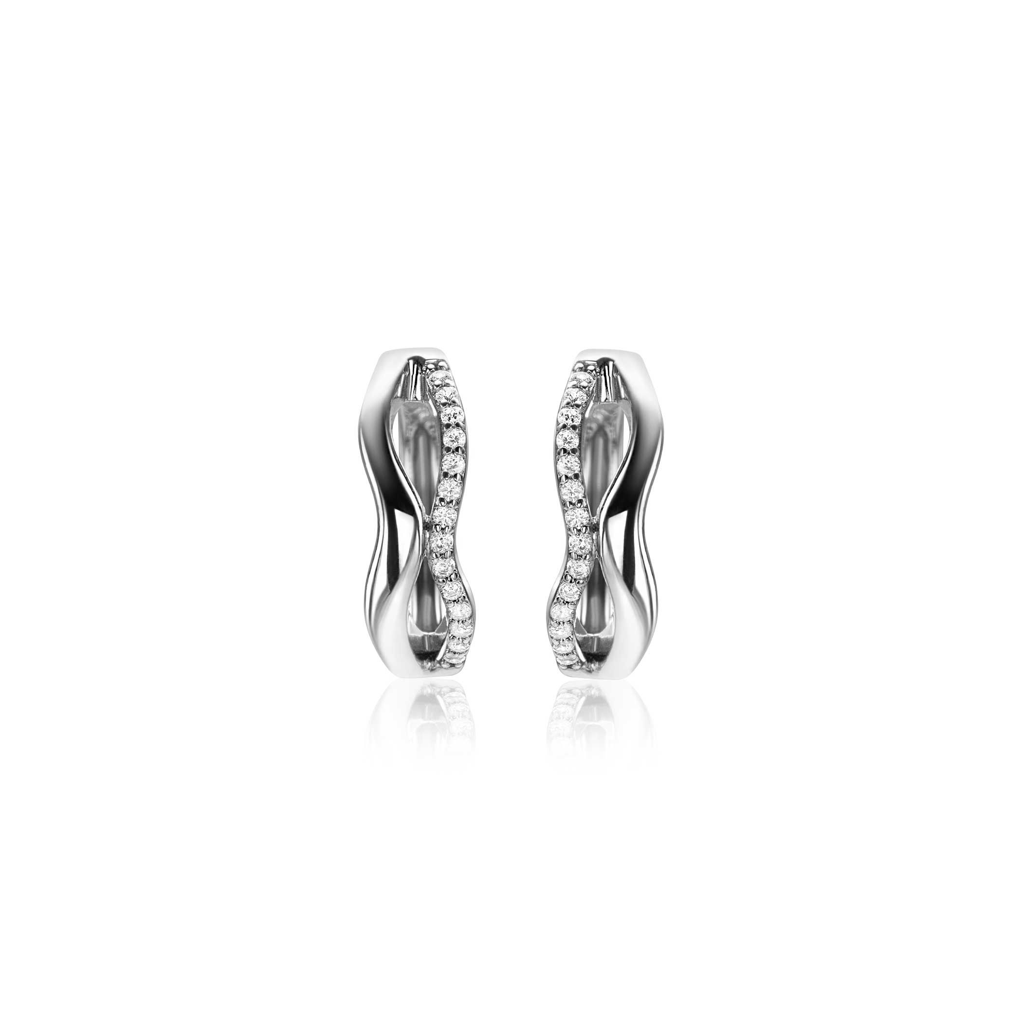 ZINZI zilveren oorringen (15mm) organisch gevormd met twee golvende banen, waarvan één bezet met witte zirconia's. Met luxe en gemakkelijke klapsluiting. Maak je look compleet met de bijpassende ring! Vervaardigd van eerste gehalte zilver (925) en voorzien van een extra rodiumlaag voor een langdurige glans.