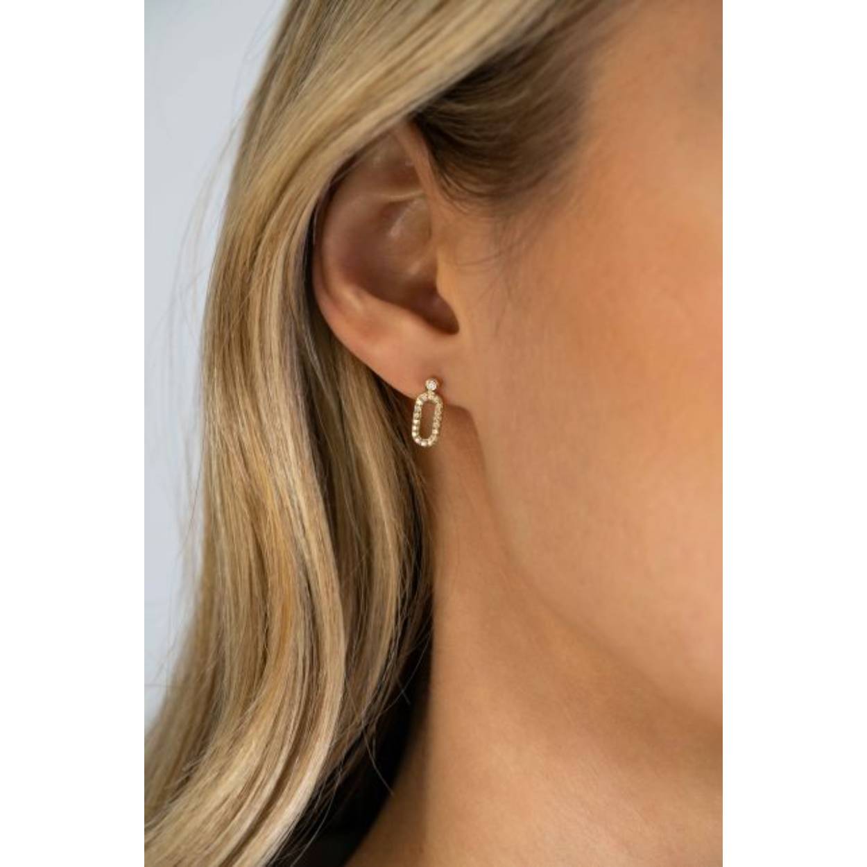 ZINZI gold plated zilveren oorstekers (13mm) waarbij de open ovale vorm is bezet met witte zirconia's. De bovenkant heeft een ronde zetting. Vervaardigd van eerste gehalte zilver (925) en voorzien van een extra 14K geel vergulding.