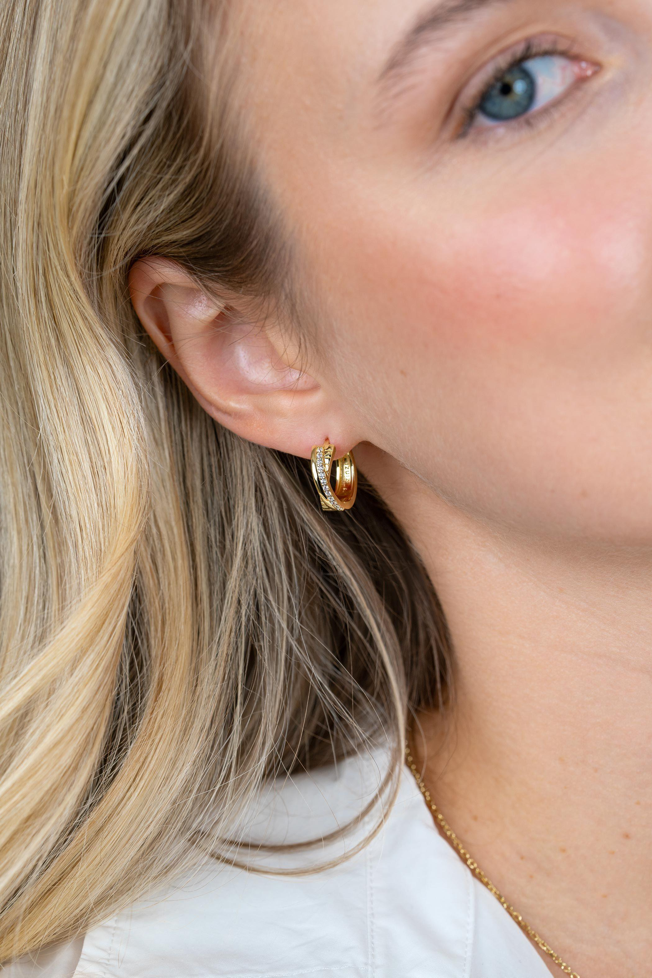 ZINZI goldplated zilveren cross-over oorringen (16,5 x 5mm), bezet met witte zirkonia's. De oorringen hebben een luxe scharniersluiting. Vervaardigd van eerste gehalte zilver (925) en extra geel verguld.