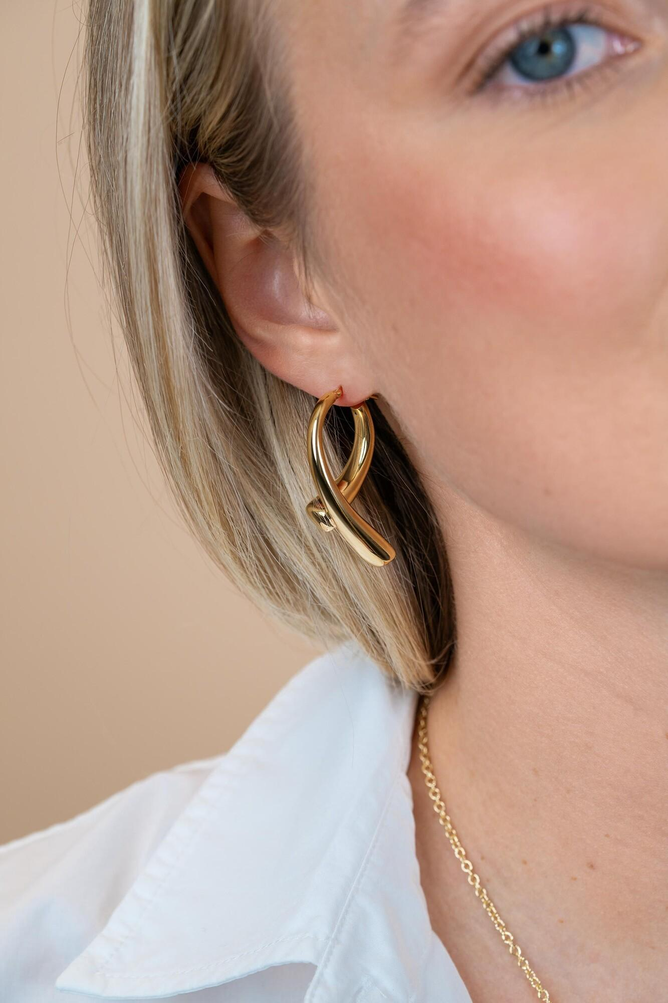 ZINZI goldplated zilveren grote oorringen (35mm) in organische druppelvorm met vloeiende lijnen en handige bovensluiting. Vervaardigd van eerste gehalte zilver (925) en extra geel verguld.