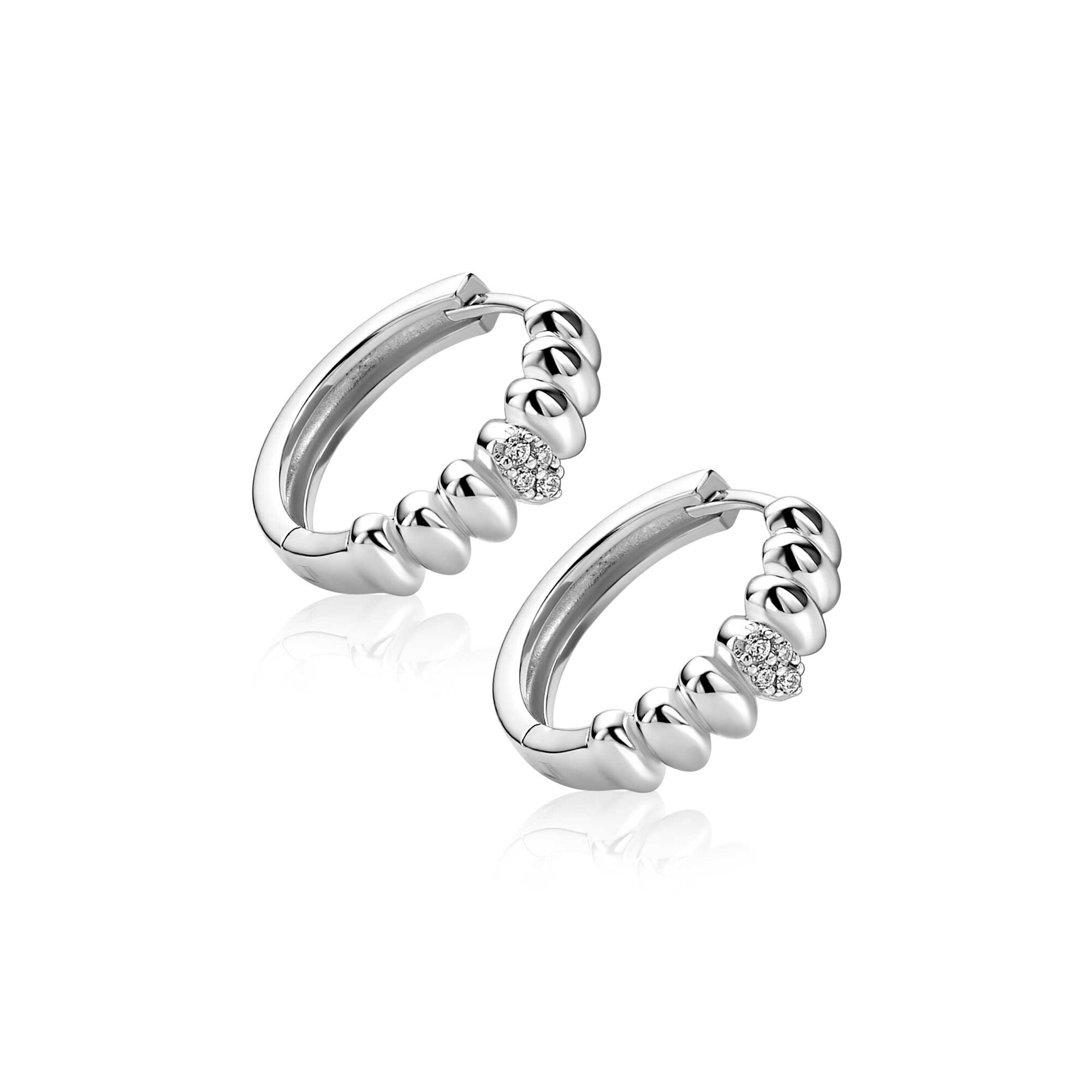 ZINZI zilveren oorringen (15mm) met sierlijk gladde ovalen, waarbij de middelste is bezet met witte zirkonia’s. Buisdikte 4mm en met luxe klapsluiting. Vervaardigd van eerste gehalte zilver (925) en voorzien van een extra rodiumlaag voor een langdurige glans.