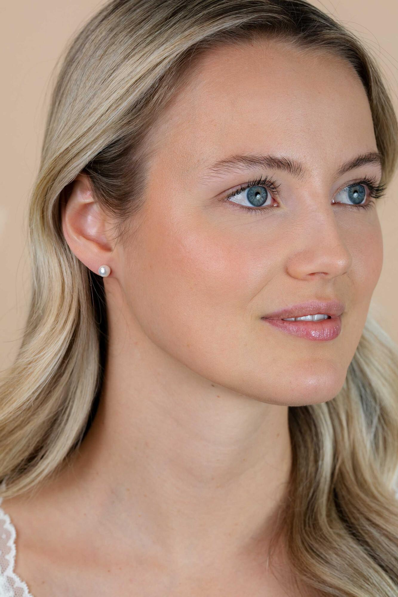 ZINZI zilveren oorknoppen met 6mm ronde witte parel. Deze oorknoppen zijn vervaardigd van sterling 925 zilver met extra rodiumlaag.