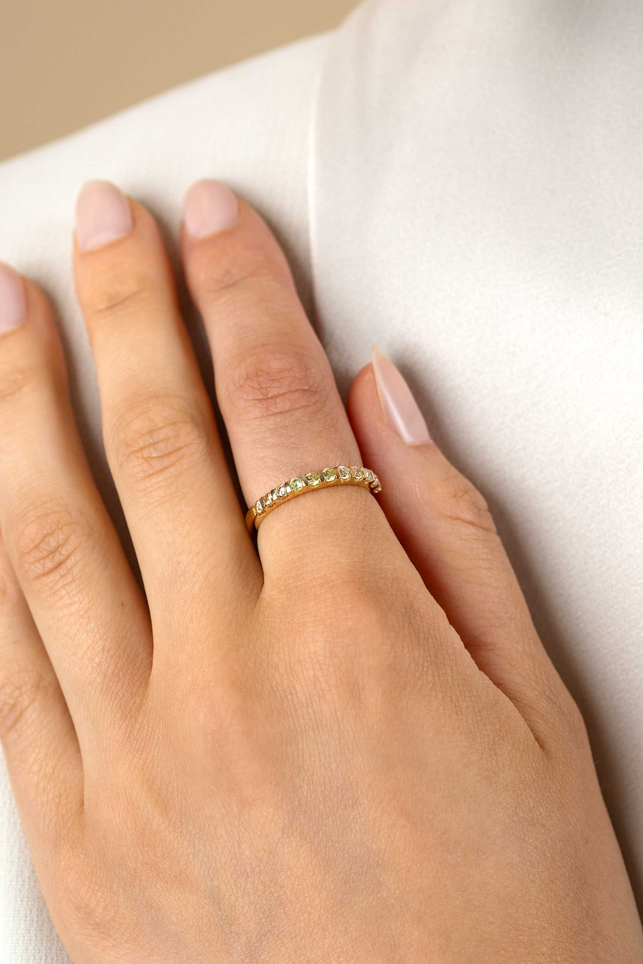 ZINZI gold plated zilveren aanschuifring bezet met champagne, peridot en witte zirconia's, sierlijk gezet in een luxe zetting. Deze ring is 2mm breed. Ideaal om af te wisselen of mee te combineren met je andere Zinzi aanschuifringen. Mix & match. Vervaardigd van eerste gehalte zilver (925) en voorzien van een extra geel vergulding.