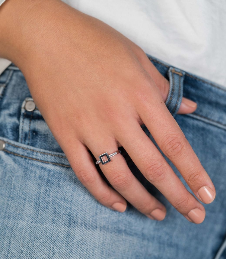 ZINZI zilveren ring met open vierkante vorm. Aan beide zijden is de ring sierlijk bezet met witte zirconia's. Vervaardigd van eerste gehalte zilver (925) en voorzien van extra rodium laag voor een witgoudkleurige glans.
