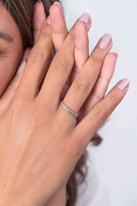 ZINZI zilveren aanschuifring met aan beide zijden een parelrand. De ronde topzetting is bezet met een witte zirconia. Breedte van de ring is 3,5mm. Gemakkelijk te combineren met andere zilveren Zinzi aanschuifringen. Mix & match! De ring is vervaardigd van eerste gehalte zilver (925) en met extra rodiumlaag voor mooie glans.