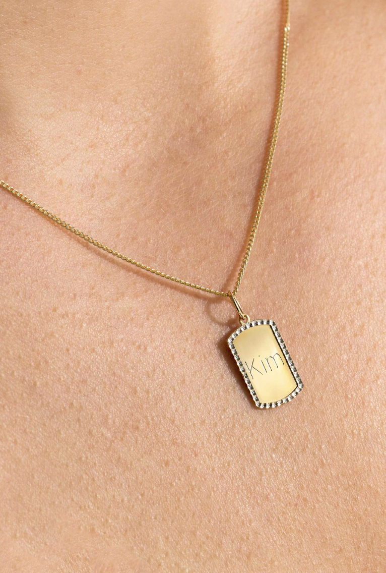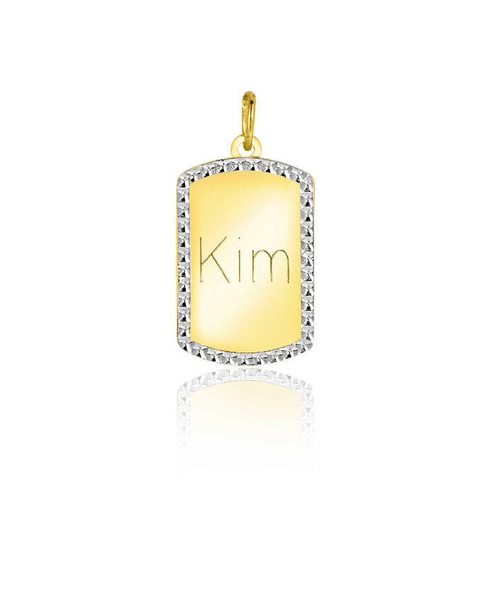 ZINZI Gold 14 karaat gouden graveerplaat in rechthoeksvorm van 14 x 9mm en met chique witgouden parelrand. Ideaal voor een gravure. Maximaal 3 letters. Vervaardigd van geheel 14 karaat goud (585).