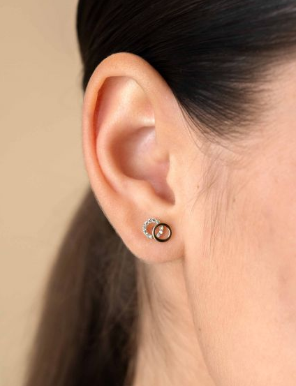 ZINZI Gold 14 krt gouden oorknoppen (9mm) met twee open rondjes die mooi verbonden zijn met elkaar. Een van de rondjes is glad, de ander bezet met witte zirconia's. Vervaardigd van geheel 14 karaat goud (585).